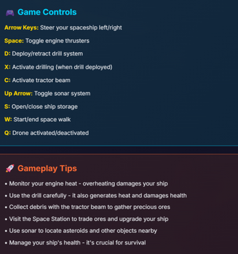 -Are you ready to jump in Astral Miner and help me built this world together the game is still in Alpha state but it is playable and I believe it's fun when you master your ship and learn how to dock and fly how to properly mine and not overheat your engine or your drill then you just might become to scratch the surface of this game also sometimes you will need to go out of the ship and do the EVA for some "simple" tasks there is also a dron in your ship that can repair an fix things for you but that cost and you will also need to learn how to use the drone properly......